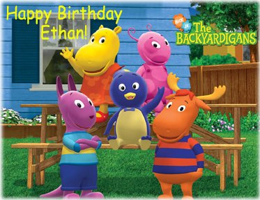 Personalized Edible Cake Image Birthday Party. Place on top of your frosted cake, cookie cake, or ice cream cake. The image is 8.5 x 11 inches in diameter. The image will arrive new in a sealed ziplock back. Peel off the backing and place on the cake. Include your personalized message with your order. The edible cake image is made of tapioca starch, corn syrup, sugar, water, canola oil. All items come from a smoke and pet free environment. 0