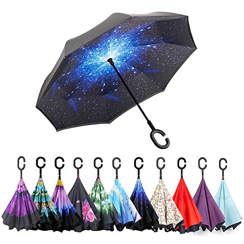 -. Binding : Misc. -. Brand : ELOVTOP -. Feature : NO MORE WET CARS - It'll Never Drag the wet thing into your car and across your lap / EASY STORAGE - It can stand up on its own, ideal for when you have nowhere to prop your umbrella up against / HANDS FREE IN THE RAIN - The C-shape handle design will leave your hands free for holding a baby or using a mobile if needed / DOUBLE LAYER UMBRELLA STRUCTURE - Inner and outer layers overlap each other, never give the chance of rain water leakage / 100% MONEY-BACK GUARANTEE - ELOVTOP are backed by 100% guarantee that you are fully satisfied with your product or receive your money back -. IsAutographed : 0 -. IsMemorabilia : 0 -. Label : ELOVTOP -. Manufacturer : ELOVTOP -. ProductGroup : Sports -. ProductTypeName : SPORTING_GOODS -. Publisher : ELOVTOP -. Studio : ELOVTOP -. Title : Inverted Umbrella, ELOVTOP Windproof Cars Double Layer Folding Reverse Umbrella