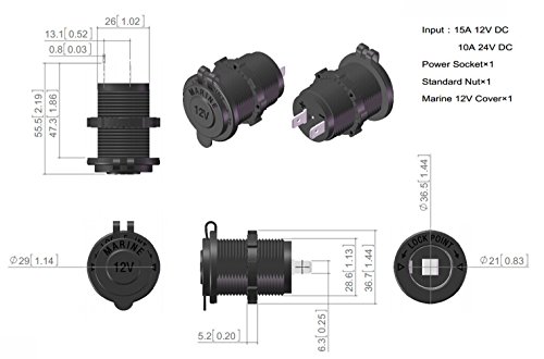 BANDC Waterproof Marine Motorcycle ATV Rv Lighter Socket Power Outlet Socket Receptacle 12v Plug