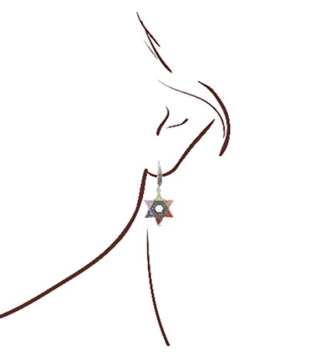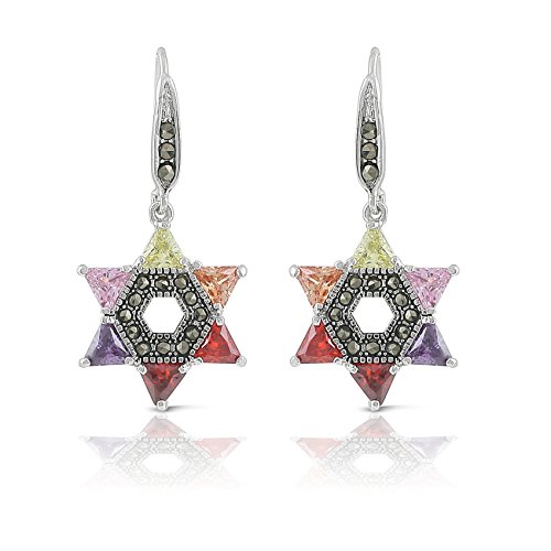 JanKuo Jewelry Rhodium Plated Multicolor Cubic Zirconia Jewish Star of David Marcasite Earrings