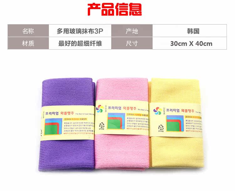 韩国超细纤维材质 擦玻璃抹布不锈钢亮面家具专用抹布 3个装
