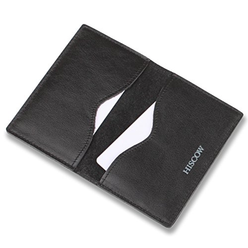 -. Title : HISCOW Minimalist Thin Bifold Card Holder Black - Italian Calfskin