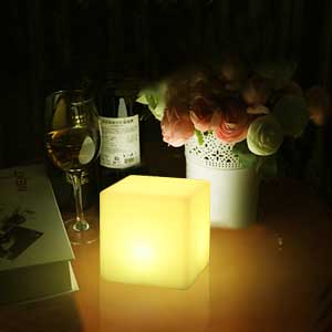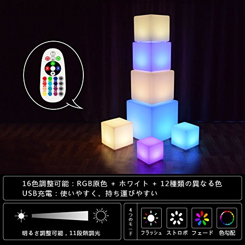 .充電式でワイヤレスなので置く場所を選びません。専用リモコンで光のパターンを自在に操ることもできます。操作が簡単で、ON/OFFしたり、色が変わるなんて。