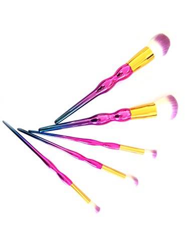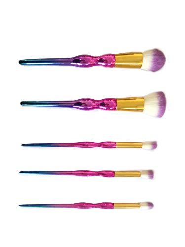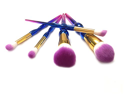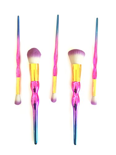 Lageniform Shape Red And Blue Color Purple Hair Makeup Brushes Premium Makeup Brush Set Powder Brush Makeup Brush Kit (5-Piece)
