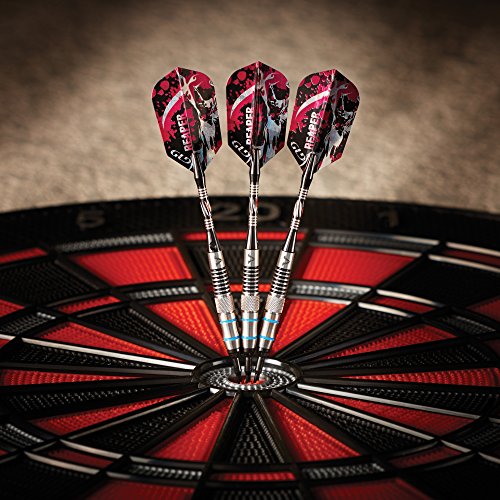 -. Feature : Designed with high quality, 80% tungsten and 20% nickel barrels which offer exceptional balance and styling in a slim profile / Each barrel has strategically placed knurled bands, deep grooves and rings that make excellent gripping points and encourages consistent hand placement / Diamond-cut aluminum shafts feature locking holes which allow for a tighter fitting that improves stability and greatly reduces the need to retighten during play / Includes an additional set of convex nylon shafts, flights, flight protectors, 2BA dart points and a dart mechanic wrench / Darts and accessories are fashionably stored and protected in the Deluxe Dart Pal case, which features a soft cloth lining and a hard outer shell