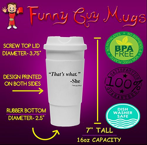 Funny Guy Mugs That's What -She Travel Tumbler With Removable Insulated Silicone Sleeve, White, 16-Ounce
