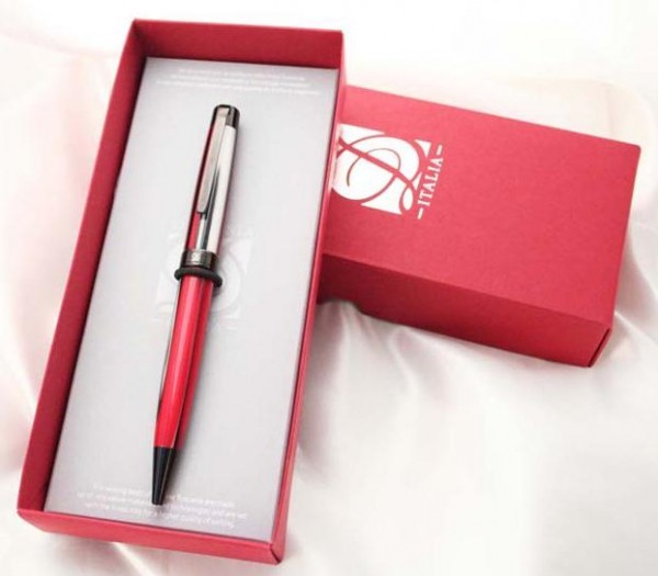 赤をベースに白と黒の縦ラインの模様が特徴的でオシャレ!思わず目を引くデザイン性の優れたボールペンです。部分的に使用されている黒が全体を締めて高級感も演出しています。ボディ上部を回すとペンが出るタイプです。軽量で書きやすく男女問わずご使用いただけます。専用のボックスに入っていますので、プレゼントにもぴったりです。 |