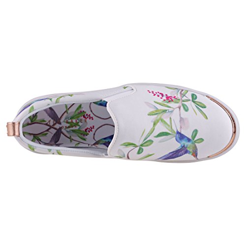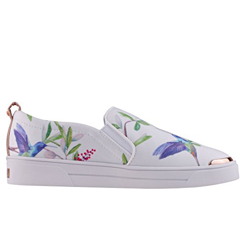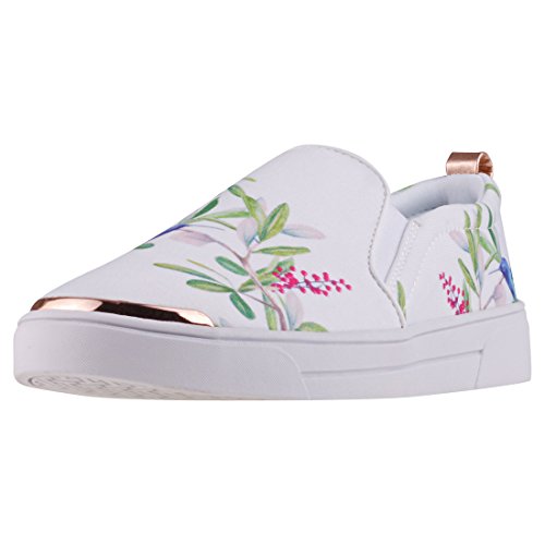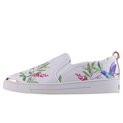 Binding : Apparel Product Description The Womens Tancey from Ted Baker combines a Textile upper with a durable Rubber sole. These Slip On feature Slip-on fastening, cushioned insole and Textile lining. Finished with Ted Baker branding, the style 9-17204 comes in a White Multicolour colourway. 0