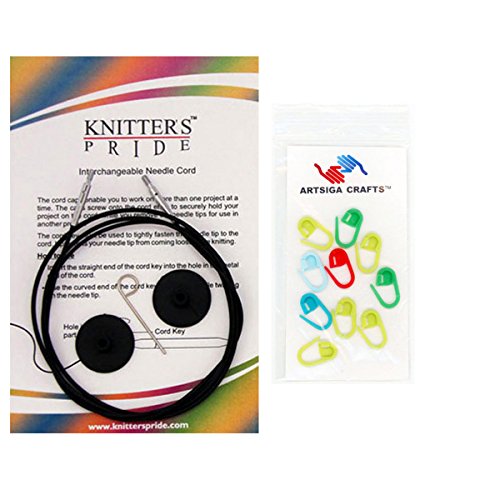 - Bundle includes 1 Knitter's Pride Interchangeable 49-inch (125cm) Black Silver Cord to make 60-inch (150cm) IC Knitting Needle with 10 Artsiga Crafts Stitch Markers 800106