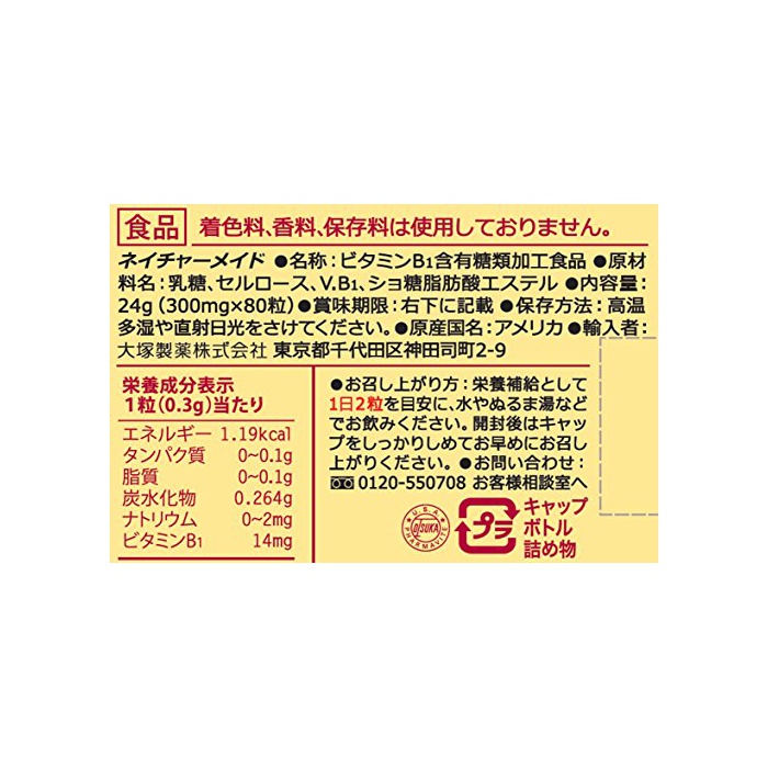 원본상품명: 大塚製? ネイチャ?メイド ビタミンB-1 80粒