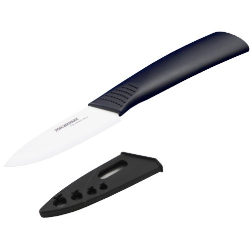 3-inch ceramic paring knife with sheath; black handle and white blade