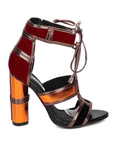 Women Color Block Chunky Heel Sandal - Block Heel Sandal - Caged Block Heel Sandal - HK91 By Ca...
