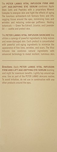 The Firm & Lift Eye Serum combines 3 powerful peptides, Apple Stem Cells and a proprietary Mineral Complex to nourish skin and fight the effects of aging. The antioxidant-rich formula firms and lifts sagging tissue around the eyes, minimizing lines, wrinkles, and eyelid crepines. The cooling serum gel soothes skin and visibly reduces under-eye puffiness. Healing botanicals—Green Tea Extract, Licorice and Lavender Oil— repair and protect skin.