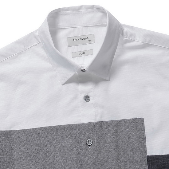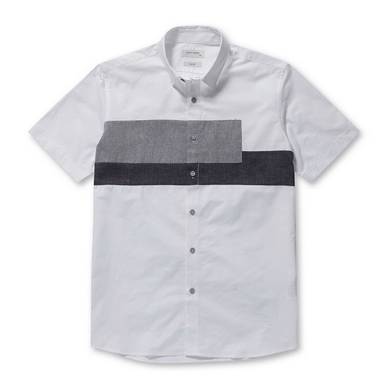 - 앞판의 블럭 배색으로 포인트를 준 남성 셔츠.