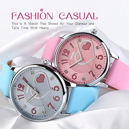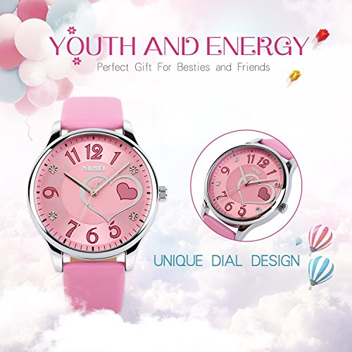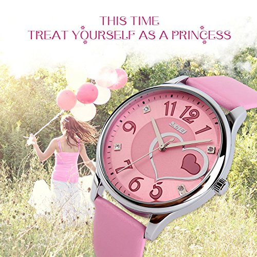 Fashion and casual dial design with hearts and cute Arabic numerals. Perfect gift watch for besties and girlfriend.