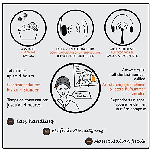 Freisprecheinrichtung: Anrufe entgegennehmen & zuletzt gewahlte Rufnummer anrufen Das eingebaute Mikro mit Echo- und Gerauschunterdruckung sorgt fur kristallklaren Klang. Ihre Lieblingsmusik via Bluetooth-Streaming Gesprachsdauer: bis zu 4 Stunden