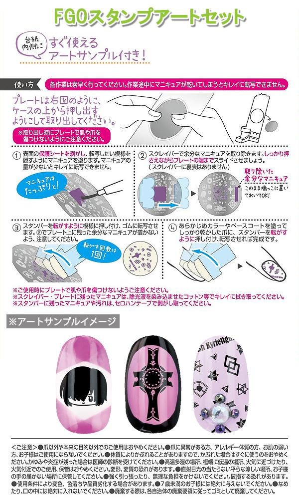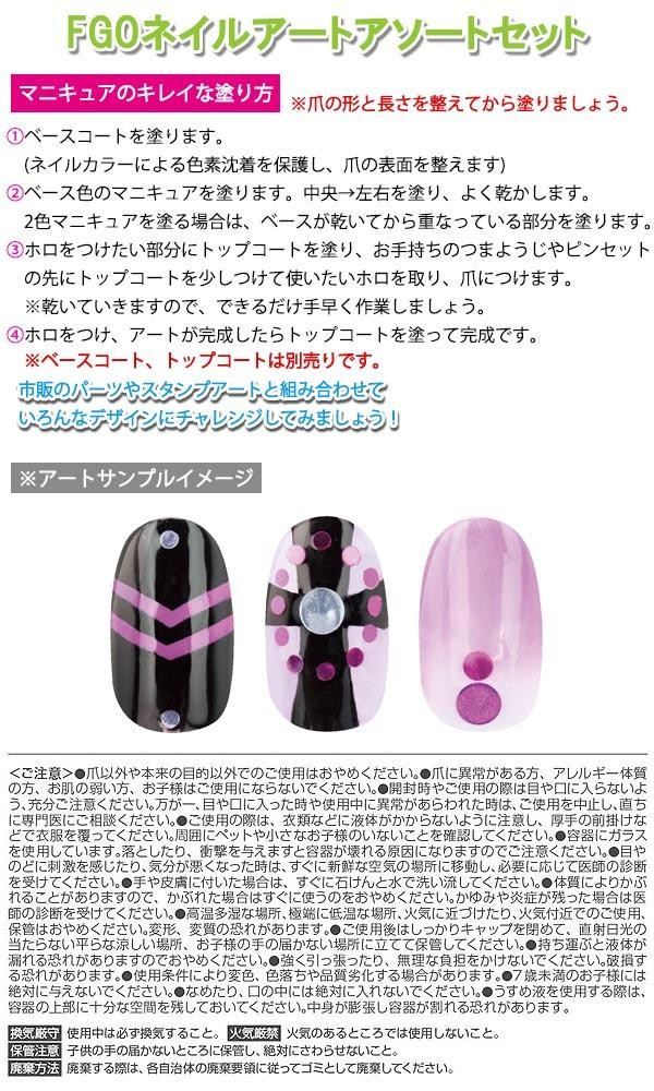 | 製造地 | FGOマニキュア:台湾、ホログラム・FGOスタンプアートセット:中国 |