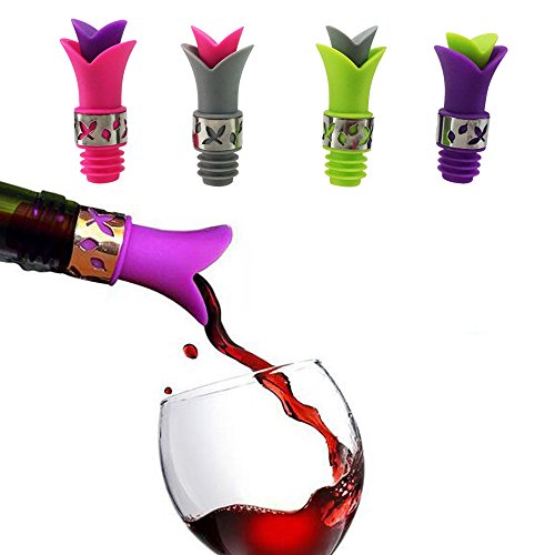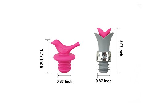 -. Feature : ◕‿◕ PACKAGE: One package includes 4 counts little bird wine stopper and 4 counts lily wine pourers. / ◕‿◕ REUSABLE: The wine corks and pourers are made of food-grade silicone, which re reusable. / ◕‿◕ MULTIPURPOSE: The leaf in the middle could be taken away, so the lily wine pourer works as both wine stopper and wine pourer. / ◕‿◕ SUITABLE FOR ALL BOTTLE TYPES: The silicone bottle stoppers can insert and pull easily, suitable for glass wine, beer bottle, beverage, cooking oil, liqueur, flavoring bottles. / ◕‿◕ SIZE: Lily wine pourer: 3.15 inch*1.34 inch, bird wine bottle stopper: 1.93*1.57 inch.