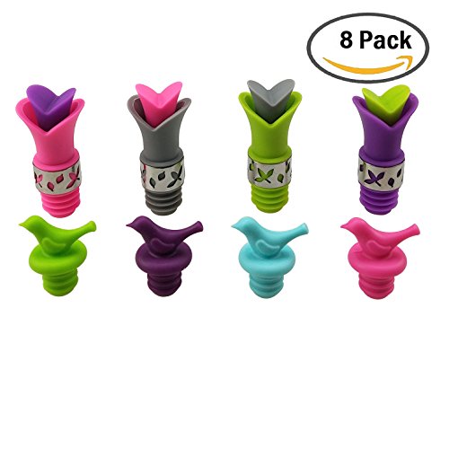 -. Title : Silicone Bird Wine Bottle Stopper Cork and Lily Wine Pourer Kit For Wine, Oil, Beverages, by CSPRING, Multicolor, 8 Counts