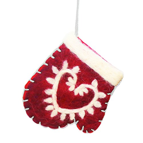Heart Stitched Mitten Red 5 x 4 Inch Polyester Christmas Ornament