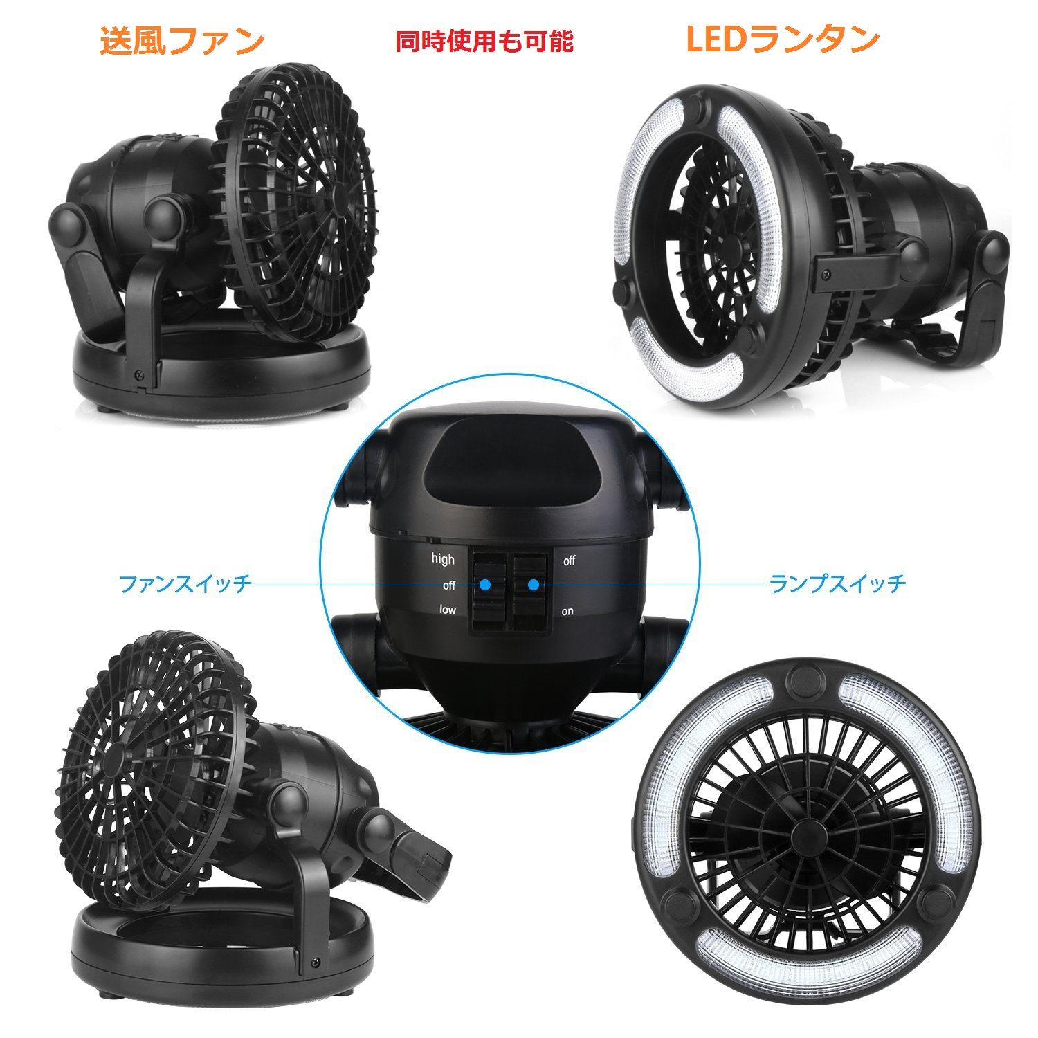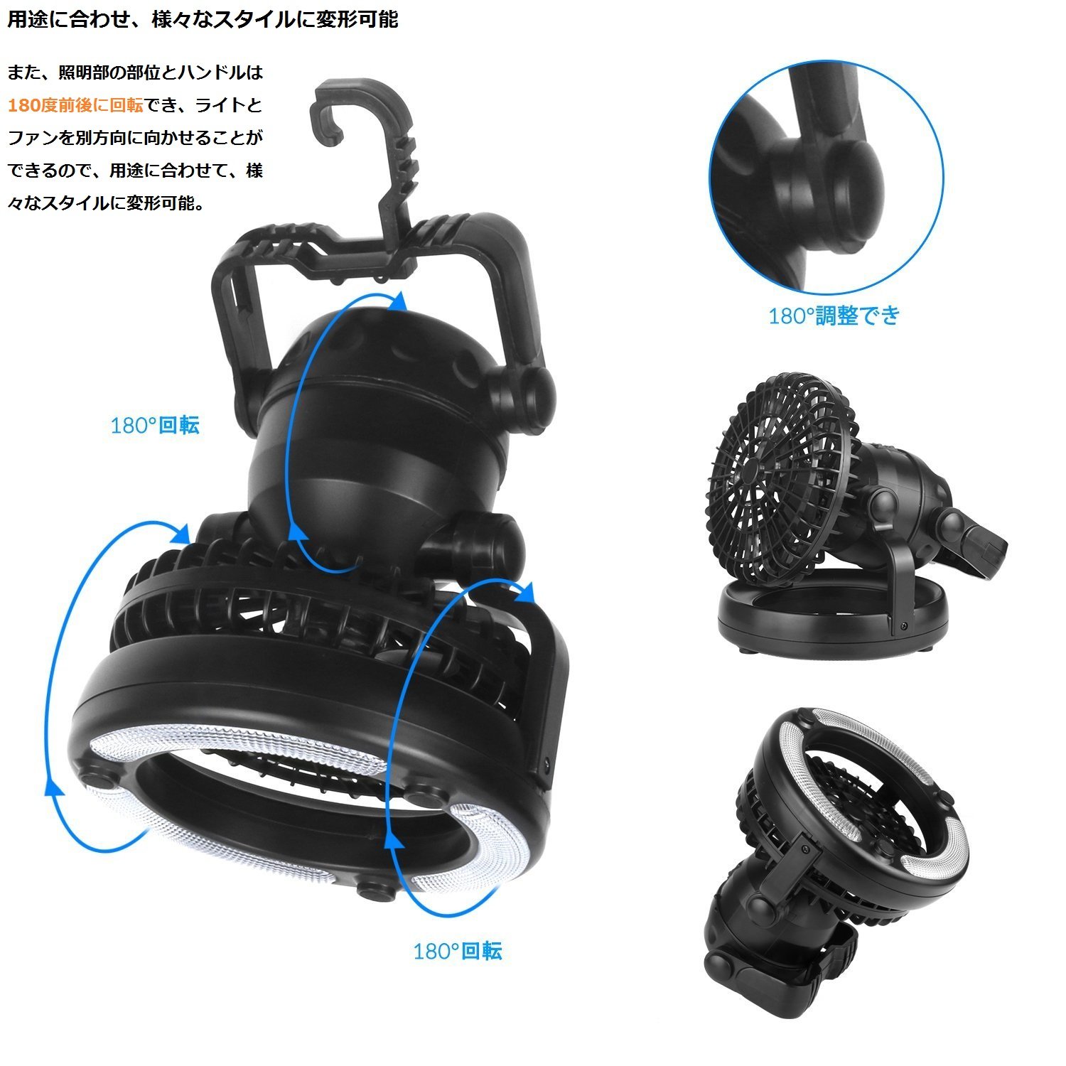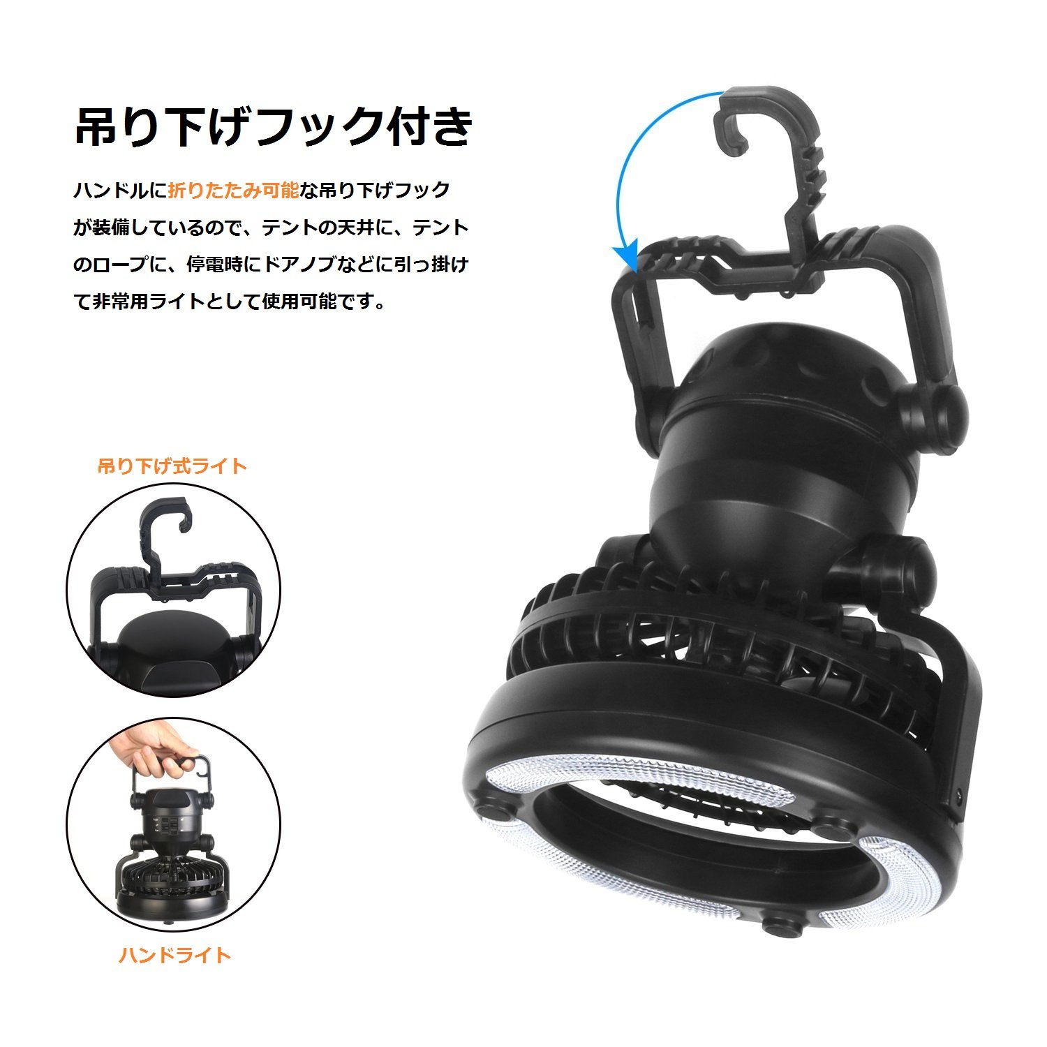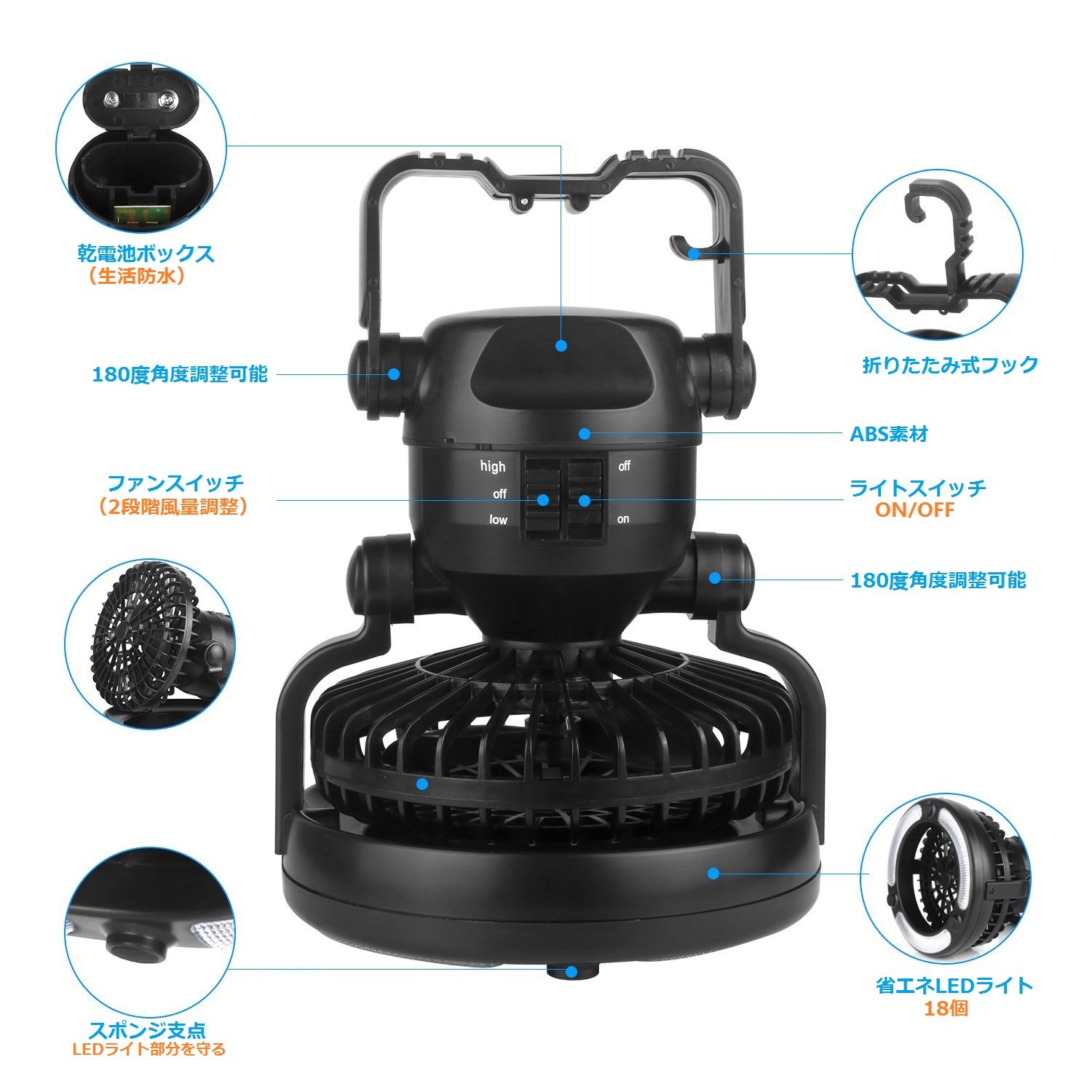 It is a multifunction LED lantern that combines the two functions of tent lighting and fan, circulating the air of the tent by the rotation of the fan, reducing unevenness of temperature and creating a comfortable space.
