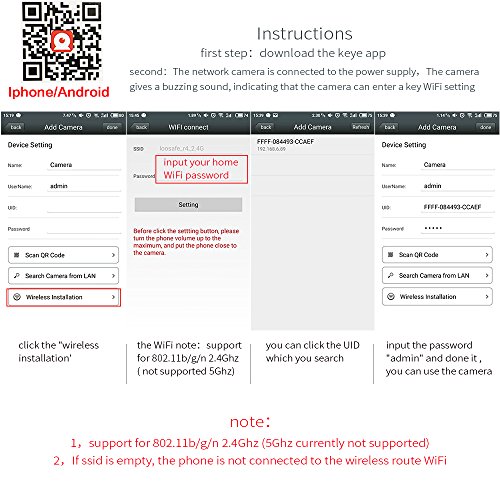 - Easy 3 Steps Connect the Dome Camera Through Free APP -- Powered the Camera,Download APP and Add the Surveillance Camera by Following the Simple Instruction in Few Minutes,so you can Remote View your home by your Smart Phone(IOS/Android).[NOTE] Make sure the WIFI name and password can not contain special symbols, not more than 18 characters