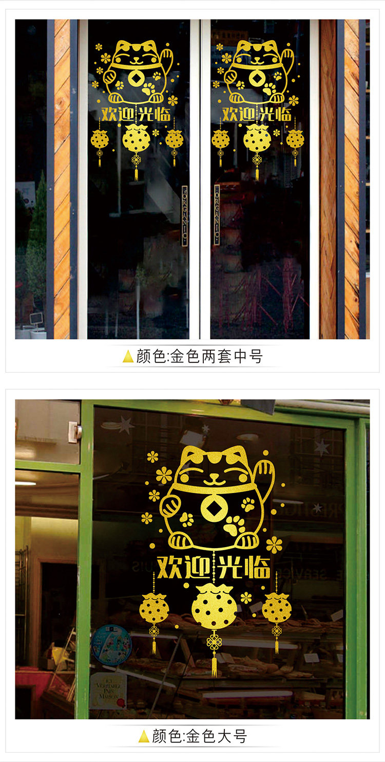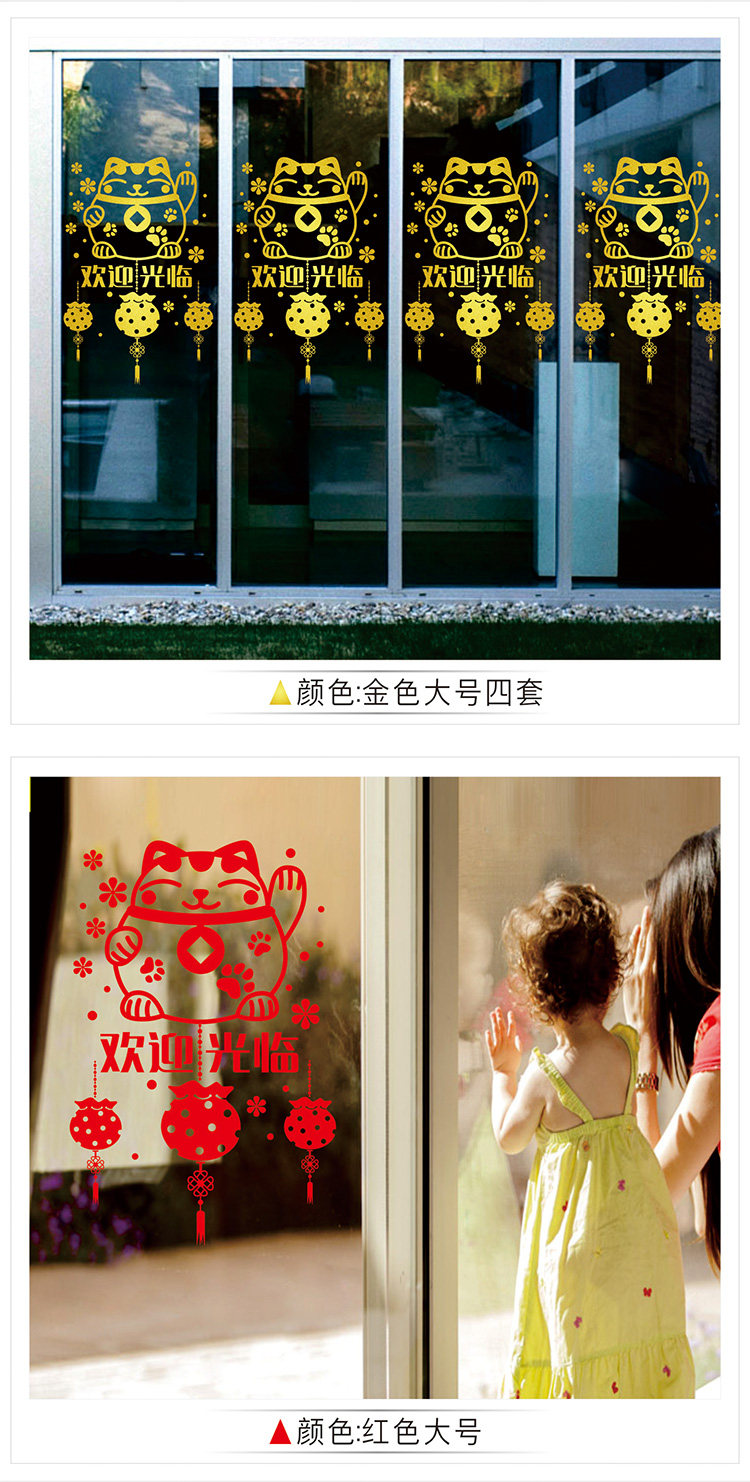 欢迎光临新春装饰品贴纸春节玻璃贴花橱窗门贴元旦场景布置墙贴画