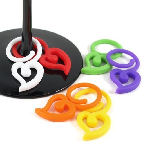 -. Feature : 6 silicone hearts wine charms / Red, white, green, purple, yellow, and orange charms / Distinctly marks a wine glass / Clip right onto a wine glass's stem / Includes storage ring