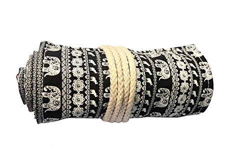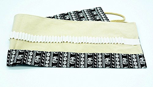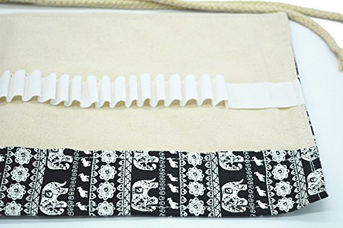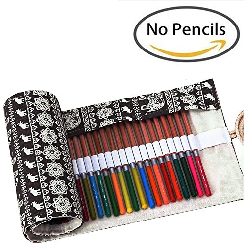 Colored Pencils Holder,72 Canvas Colored Pencils Wrap 72 Pencils Case,Canvas Roll up Wrap Bag Pouch For Gen Pens,Colored Pencils (NO Pencils Included), Bohemian Retro Elephant, 72 Holes(black)