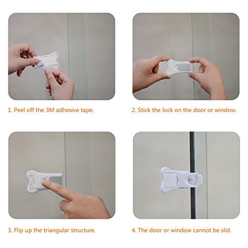 - Premium Materials--Strong 3M adhesive tape allows working on lots of flat surface like glass, wood, plastic and metal, helping locks stay firmly on various sliding doors and windows.