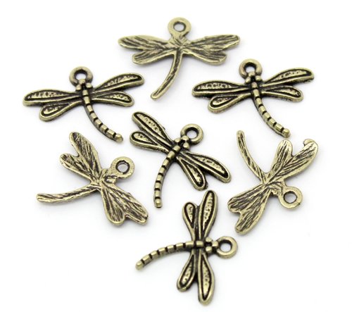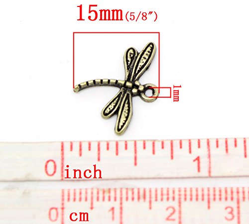 PEPPERLONELY Brand 100 PC Antique Bronze Dragonfly Charm Pendants 6/8 x 5/8 Inch ( 19MM x 15MM )