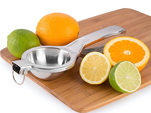 -. Feature : Jumbo Stainless Steel lemon, lime, & orange press is designed to extract the juices of lemons, limes, and even oranges / High quality dish washer safe stainless finish, designed to never stick / Extract the juices of lemons, limes, and even oranges while catching seeds / Made from premium Food Grade 304 stainless steel / Solid-cast will not chip, scratch or rust, built to last a life time.