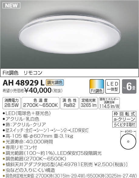 ●調色時定格光束値:2700K時(3015lm・29.4W)/6500K時(3025lm・27.4W)