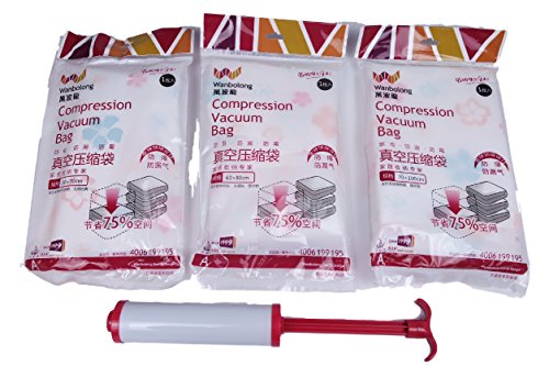 -. Title : Hilivre Space Saver Vacuum Bag Set Of 3(1X S-Sized,1X M-Sized And 1X L-Sized) Vacuum Bags With Air Pump Complete Set