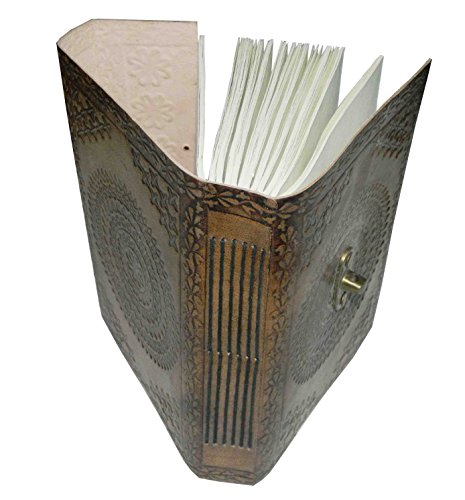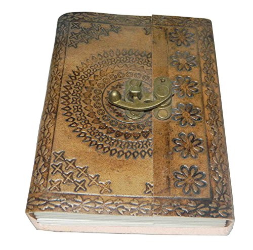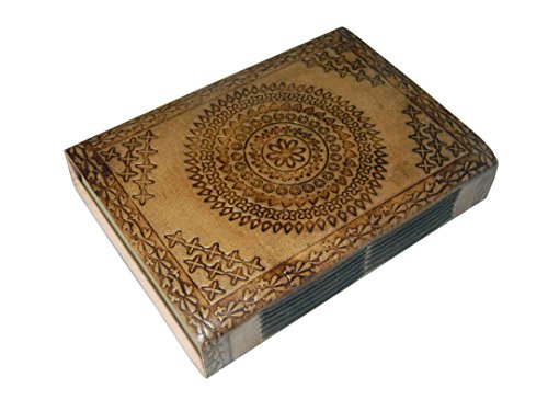 This tanned leather journal is embossed with traditional mandala design and is provided with the 96 blank pages of 125 GSM offwhite handmade paper.