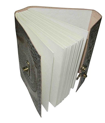 M&N Handmade Tanned Leather Journal, Notebook, Blank Pages, Metal Clasp, 7"x5"