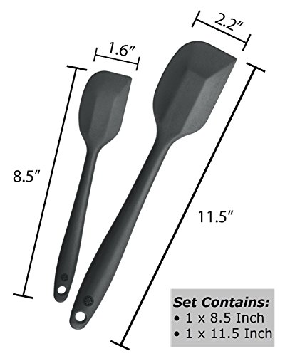 Tired of cheap, unhygienic spatulas that warp, melt, or stain? StarPack Premium Silicone Spatulas are made of 100% BPA-free solid silicone - there are no crevices to hide bacteria, they are built to withstand high heat (up to 480°F) and will never let you down. The smooth edges are kind to your non-stick pans, and are perfect for spreading frosting or scraping the last bit of cake batter out of the mixing bowl. Clean up is a breeze too, as silicone simply wipes clean, or just throw in the dishwasher. Fall in love with cooking again, and see how easy it is to create delicious dishes and sweet treats with a good set of spatulas in your kitchen! Set Contains: 1 x Large Silicone Spatula: 11.5" x 2.2" • 1 x Small Silicone Spatula: 8.5" x 1.6"Feature