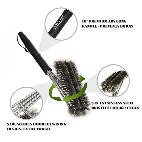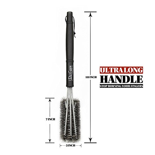 FULL CONTROL WITH NO BURNT HANDS - iDoCare barbeque grill brushes have 18" handle, you are sure to keep your hands safe while generating a TON of leverage. What do you need to get deep into your grates and get the best clean? Leverage. Our brush's size offers the ability to get a better clean with less effort while keeping you appendages safely away from the heat.