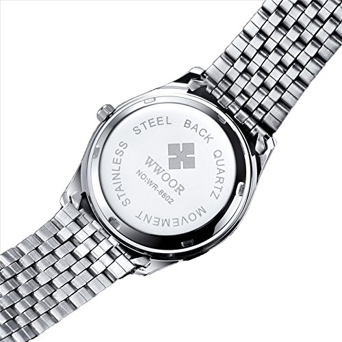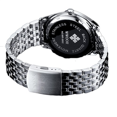 German high hardness glass, not easy to wear, key scratch resistant watch face, stainless steel water proof case cover and watch band make it super durable, smooth polished stainless steel band strap provide wear resistant and comfortable wearing experience