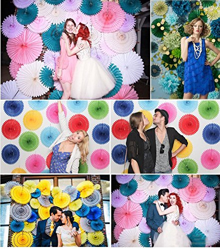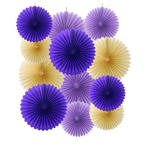 Ipalmay 12PCS Assorted Colors Hanging Tissue Paper Fans for Weeding Birthday Party Decorations(14", 10" , Purple, Lavender, Ivory )