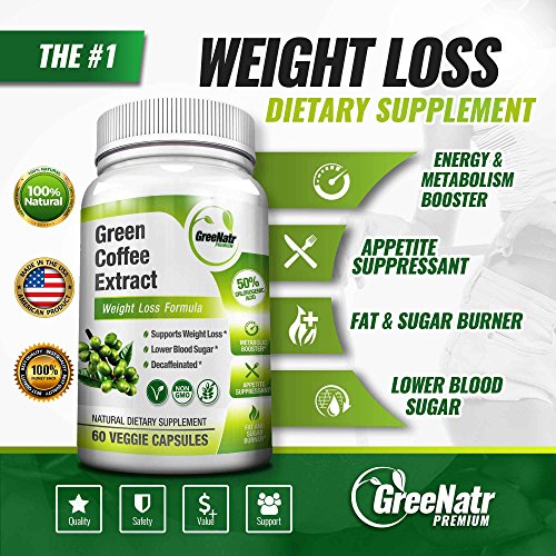 Green Coffee Bean Extract - 50% Chlorogenic Acids * 60 Veggie / Gluten Free Capsules for Natural Weight Loss