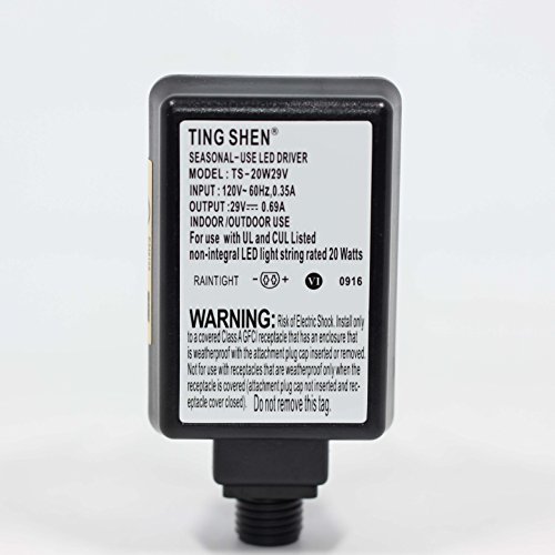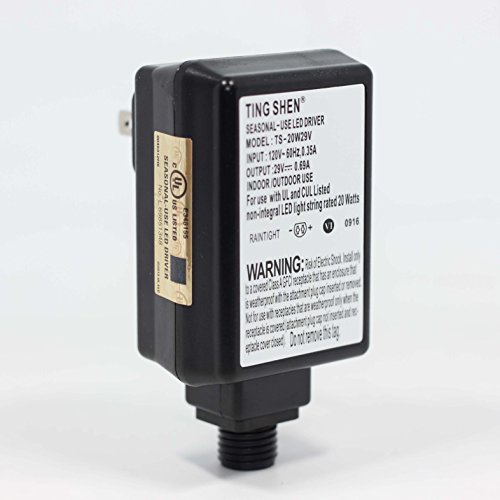 Ting Shen, Wall-mount TS-20W29V US Plug Adapter/Transformer, Seasonal-Use LED Driver, Black Color.