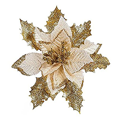 8Pcs Glitter Artificial Christmas Flowers Wedding Wreaths Ornaments Gold