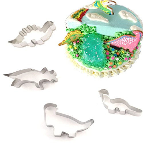 Fondant Cake Cookie Cutter Mold Sugarcraft Icing Decorating ,Dinosaur,Stainless Steel (4pcs)
