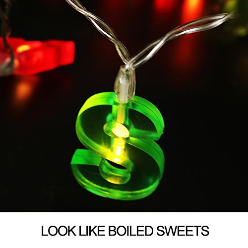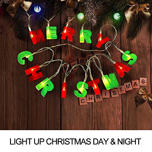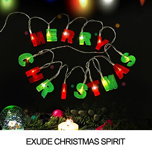 - SPREAD CHRISTMAS CHEER WITH "MERRY CHRISTMAS" LETTER BANNER - 1.4" Tall individual CAPITAL letters (MERRY CHRISTMAS) on an approx 6' long cable, available in 2 colors: red & green, which exude the Christmas spirit - By day, 14 semitransparent letters with built-in LED bulbs like boiled sweets, creating a celebratory Christmas ambience - Starburst shines through letters at night, giving your home a warm white glow & providing a warm Christmas feeling - Enjoy the Christmas with this letter banner!
