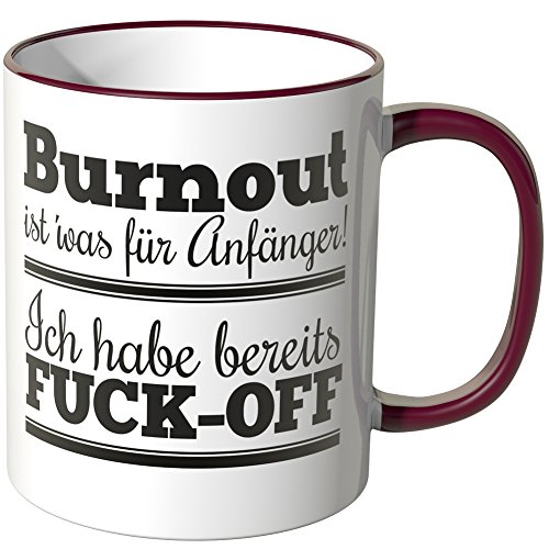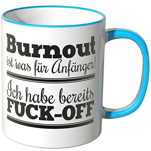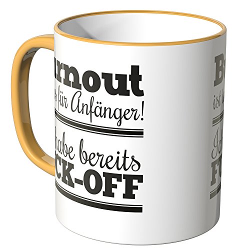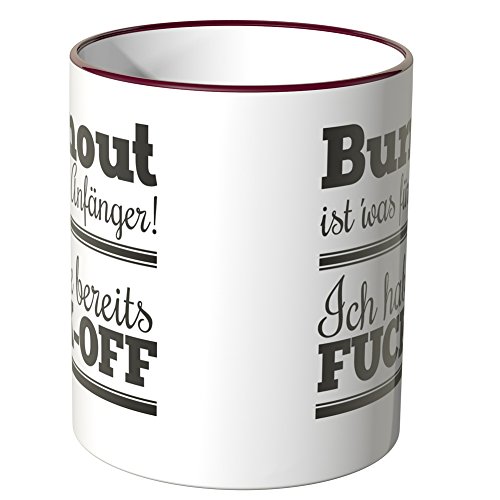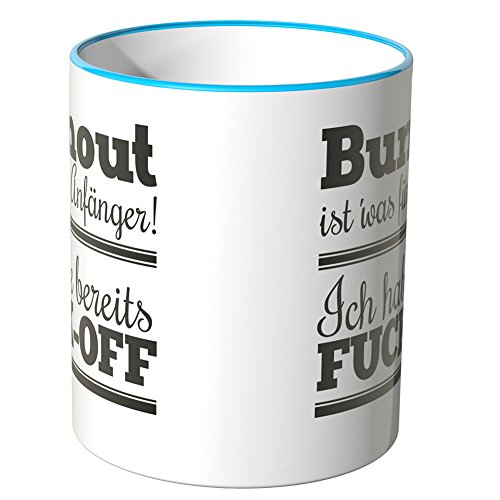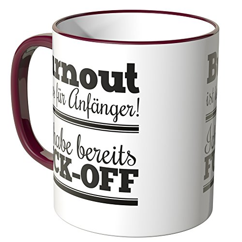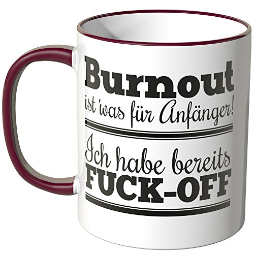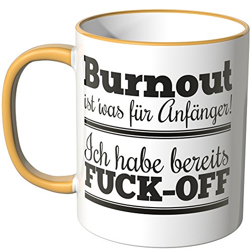 -. Binding : Haushaltswaren -. Brand : Wandkings -. Feature : Exklusive Wandkings Tasse mit Spruch: Burnout ist' was für Anfänger! Ich habe bereits FUCK-OFF. Made in Germany! / Keramiktasse mit farbigem Henkel in Ihrer Wunschfarbe. Sie können aus 12 Farben frei wählen. / Hochwertige Verarbeitung. Langlebige Qualität. Spülmaschinen- und mikrowellenfest. / Maße der Tasse: Größe ø 82 mm, Höhe 95 mm, Fassungsvermögen 0,3 l - beidseitig bedruckt. / Lieferumfang: 1x Wandkings Tasse mit Spruch: Burnout ist' was für Anfänger! Ich habe bereits FUCK-OFF. -. Label : Wandkings -. Manufacturer : Wandkings -. ProductGroup : Küche & Haushalt -. ProductTypeName : HOME -. Publisher : Wandkings -. Studio : Wandkings -. Title : Wandkings Tasse, Spruch: Burnout ist' was für Anfänger! Ich habe bereits FUCK-OFF