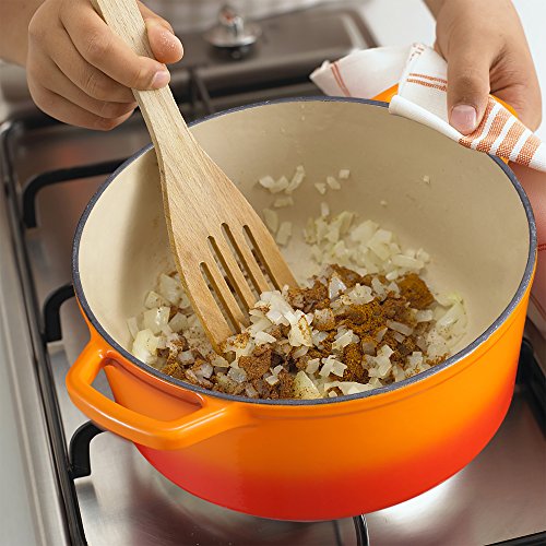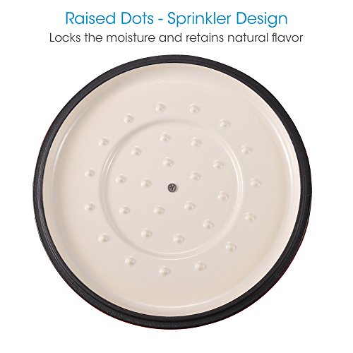 Heavy duty cast iron construction provides long lasting durability, delivers superior heat retention and consistent cooking results, perfect for preparing slow cooked meals such as casseroles, stews, sauces, soups, and more