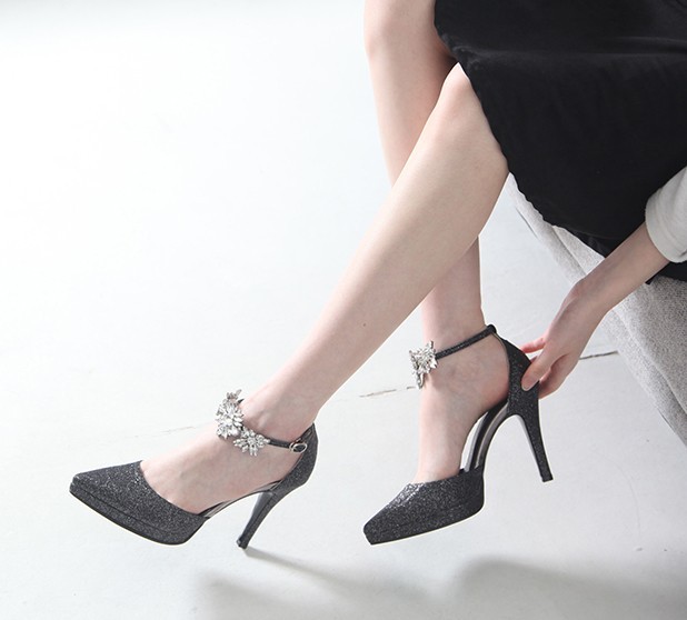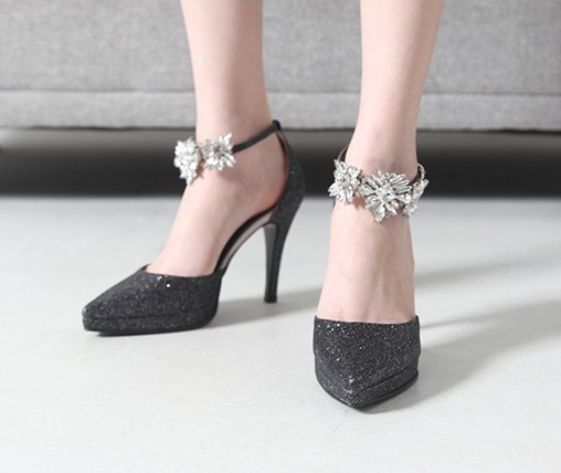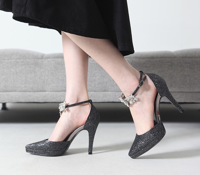商品名:パンプス レディース アンクルストラップ サイドオープン キラキラ ピンヒール 2017 春 ファッション 靴 婦人靴