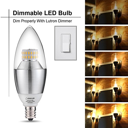LOHAS LED Candelabra Bulb, Dimmable 60-Watt Light Bulbs Equivalent, LED 6-Watt Warm White 2700K Chandelier Bulbs, Decorative Candle Light Bulb E12 Candelabra Base, 120V, 550 Lm, Torpedo Shape(3 Pack)