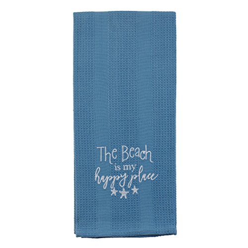 Ocean Blue The Beach is My Happy Place 19 x 28 Inch Embroidered Cotton Waffle Dish Towel